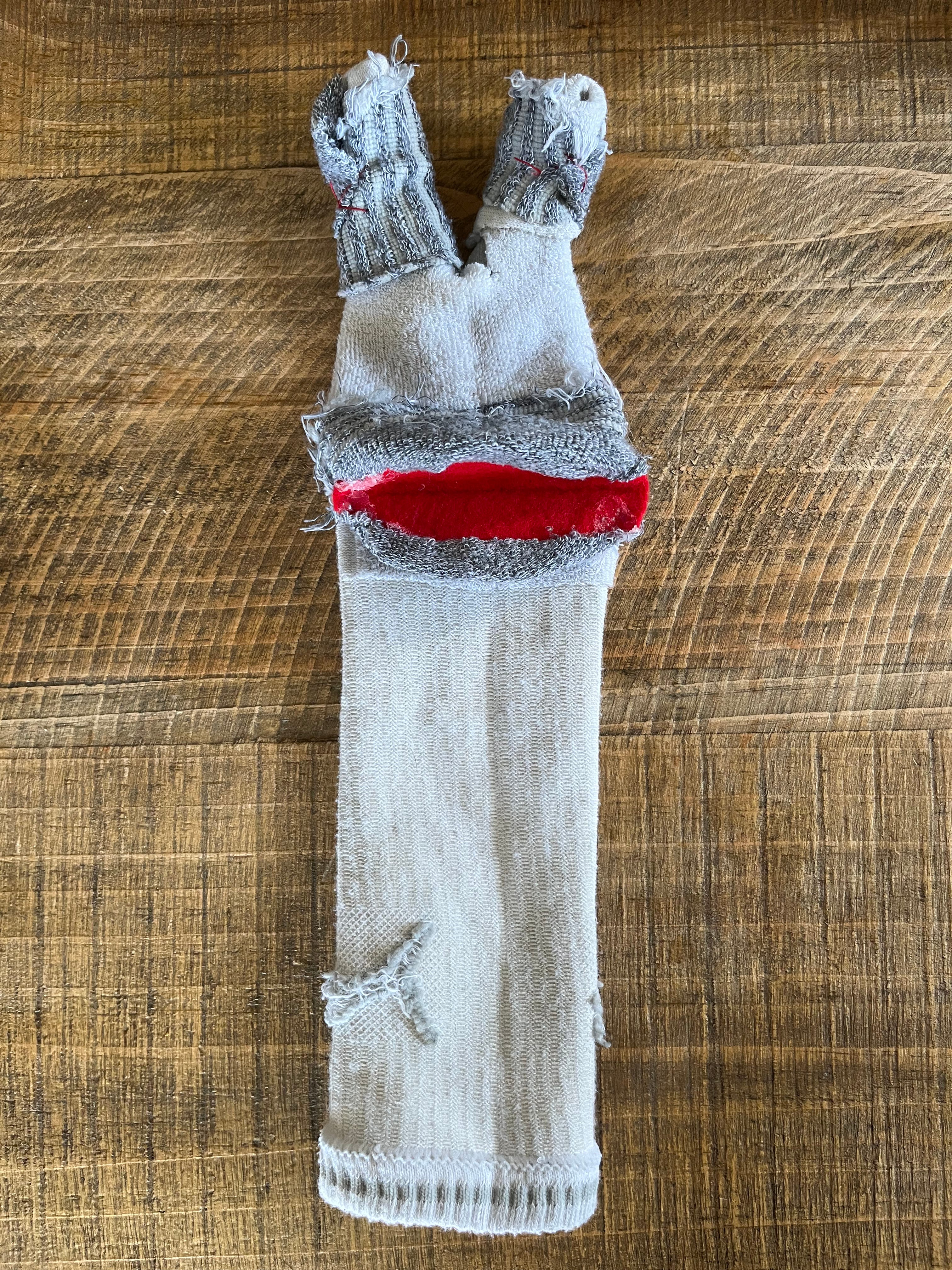 Making these furry things - surrounded by fabric scraps, faux fur, and the nostalgic smell of hot glue - got me working with my hands and in the zone at my ‘workstation’. With the glue gun still smoking, I couldn’t resist grabbing an old sock and cut a few holes in it. The results were.. underwhelming: